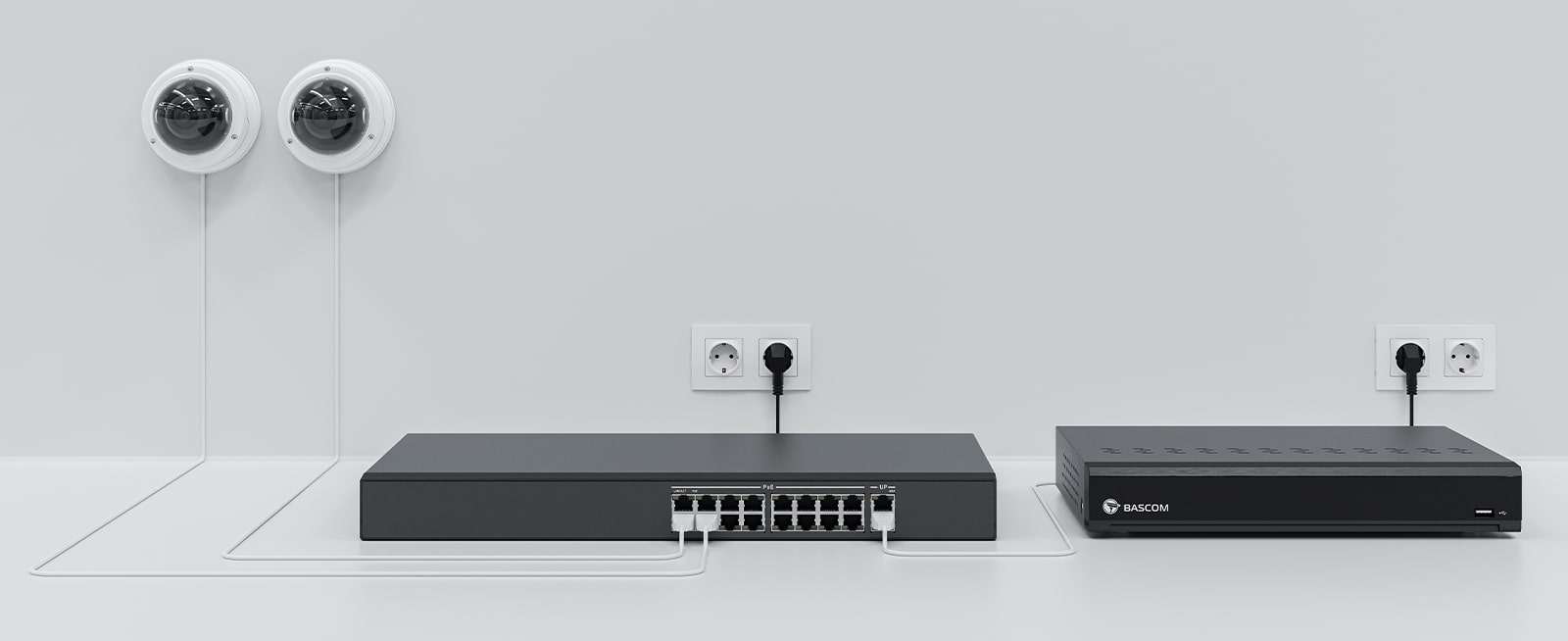 Bij de installatie van een bekabeld camerasysteem worden camera's doorgaans rechtstreeks op de recorder aangesloten. Voor grotere systemen kan het gebruik van een PoE-switch echter efficiënter zijn, vooral wanneer er een grote afstand is tussen een groep camera's en de recorder. U sluit dan meerdere camera's aan op de PoE-switch en hoeft vervolgens slechts één kabel naar de recorder te trekken.